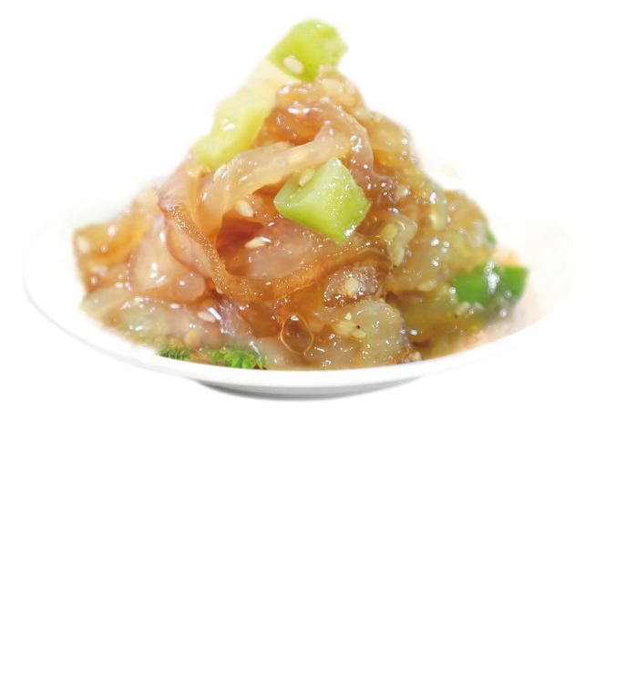海蜇絲、白砂糖、果葡糖漿、釀造食醋、貢菜